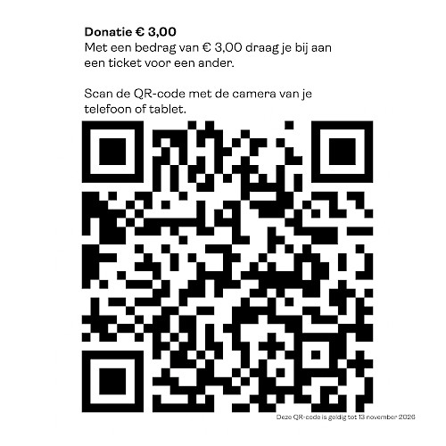 Met een bedrag van € 3,00 draag je bij aan een ticket voor een ander. Scan de onderstaande linker QR-code met de camera van je telefoon of tablet.