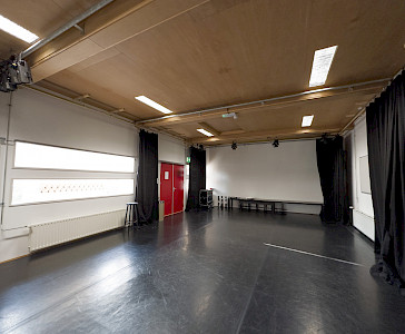 De theaterzaal kun je huren om te repeteren of je voorstelling te spelen.