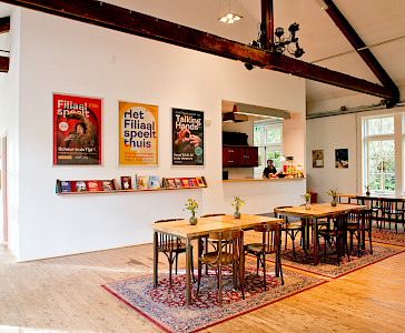 De foyer is een open ruimte met bar en aangrenzende keuken. Is geschikt voor vergaderingen, diners, borrels, maar ook voor (kleine) optredens.