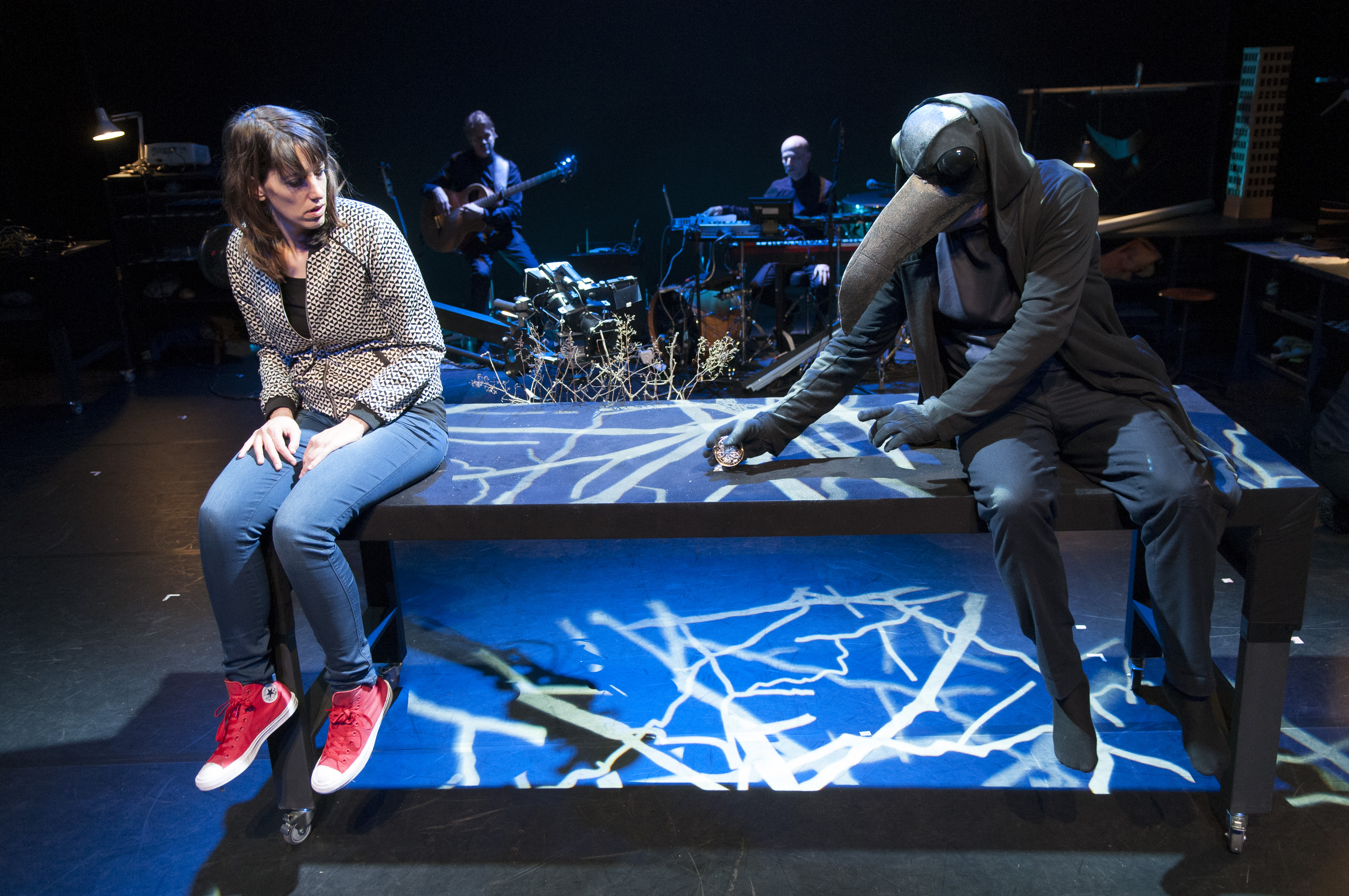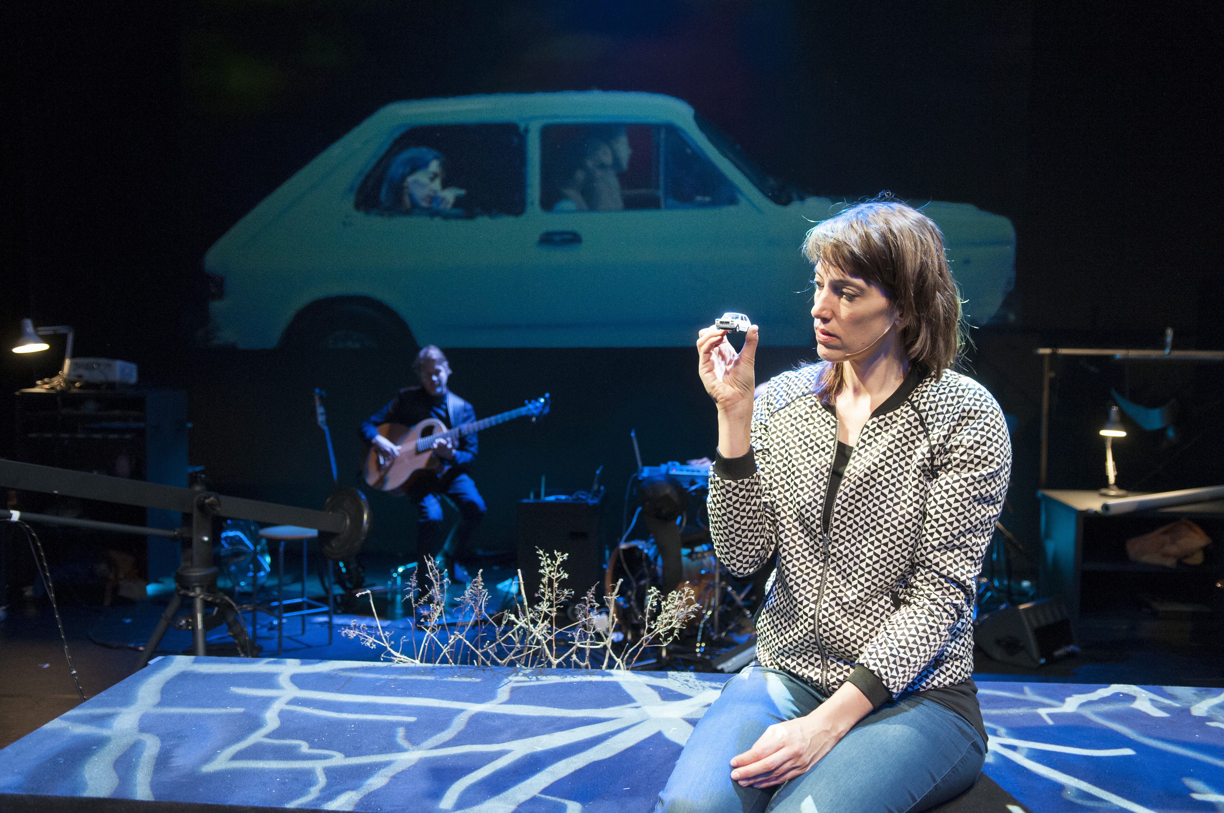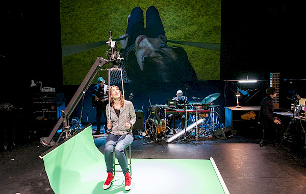 In Falling Dreams anything can happen, just like in a dream. Using cameras and projection, the audience is in many places at once and miniature worlds are blown up and made to look larger than life. At times it’s like you suddenly find yourself in a music video, complete with raw pop songs and bizarre objects.