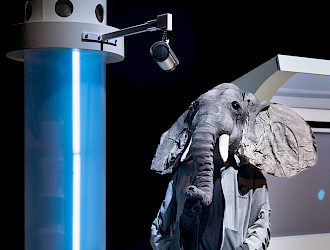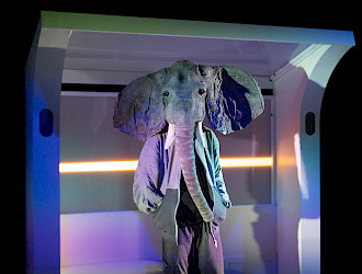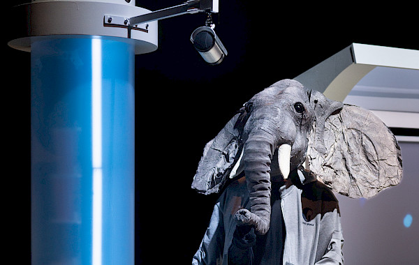 Deze voorstelling speelt zich af in een snelle, geautomatiseerde wereld, waarin de dingen hun eigen leven leiden. En ineens staat daar een olifant bij de bushalte. Hij oogt wat verward. Maar wie is er nou vreemd? De olifant of de snelle wereld om hem heen?