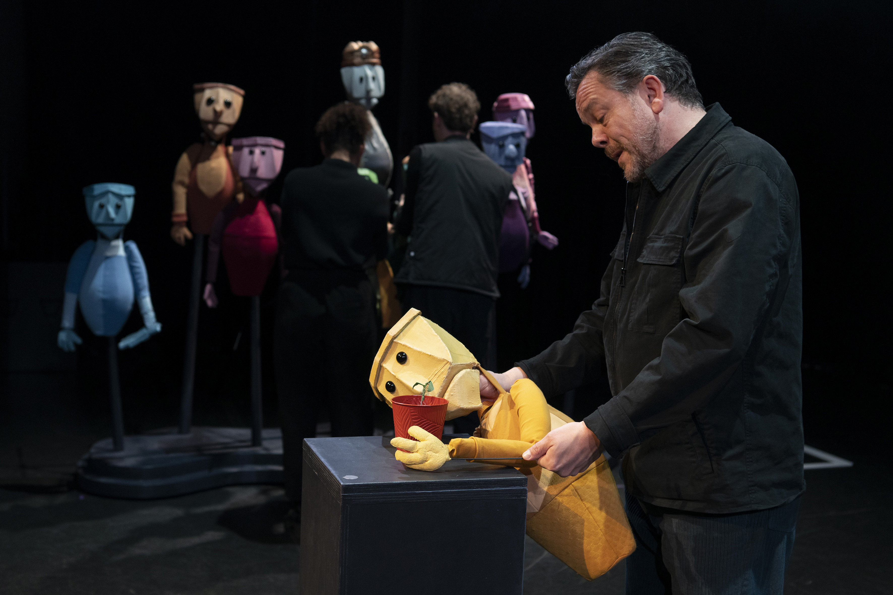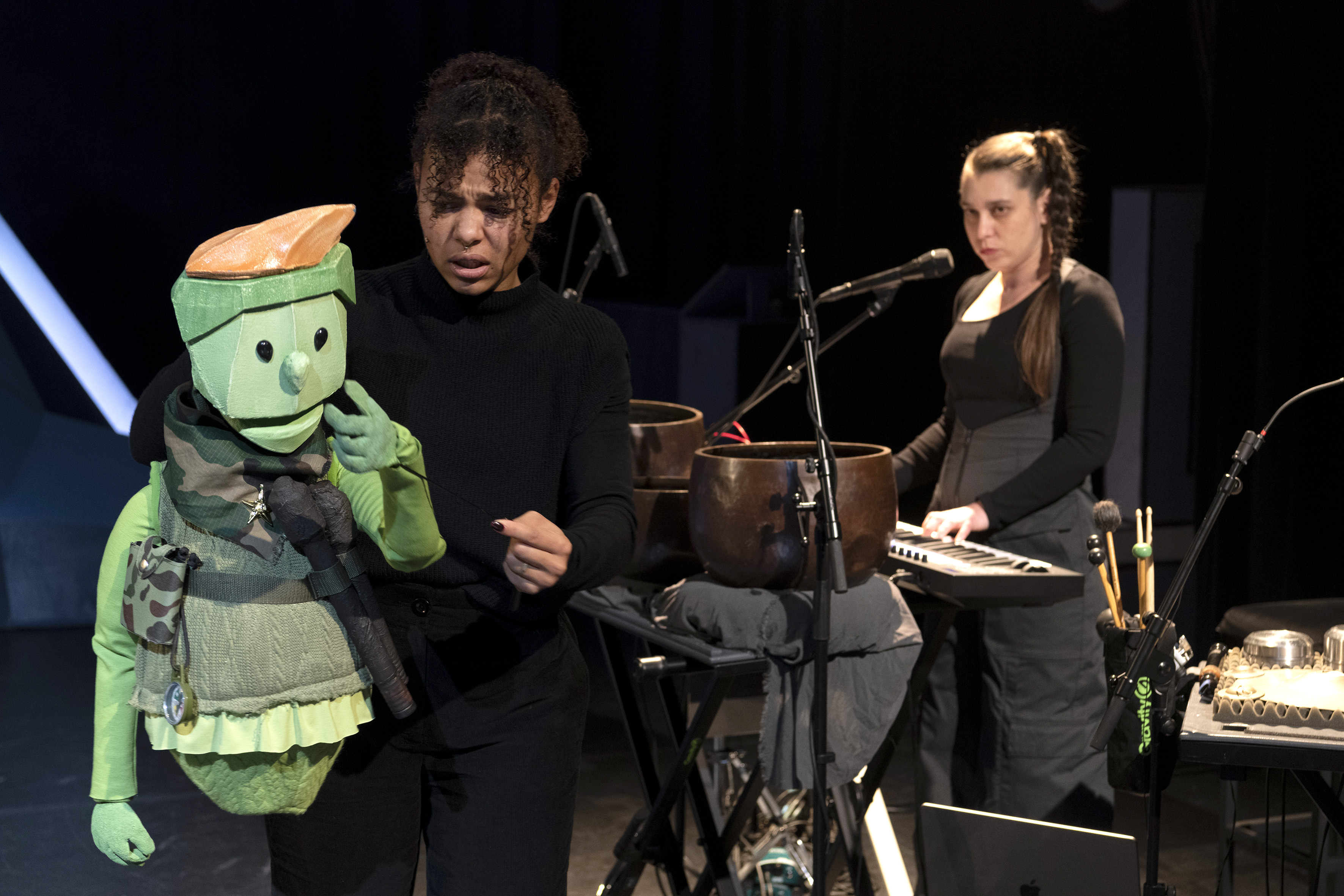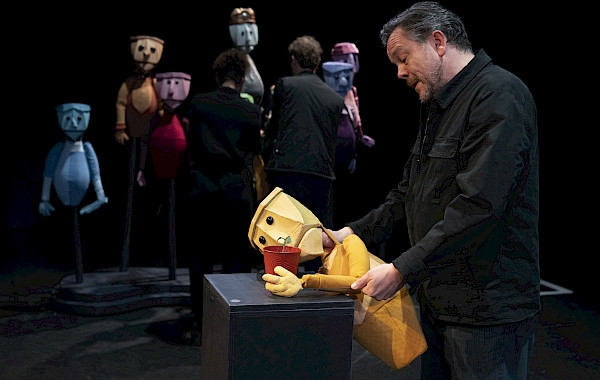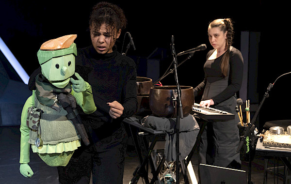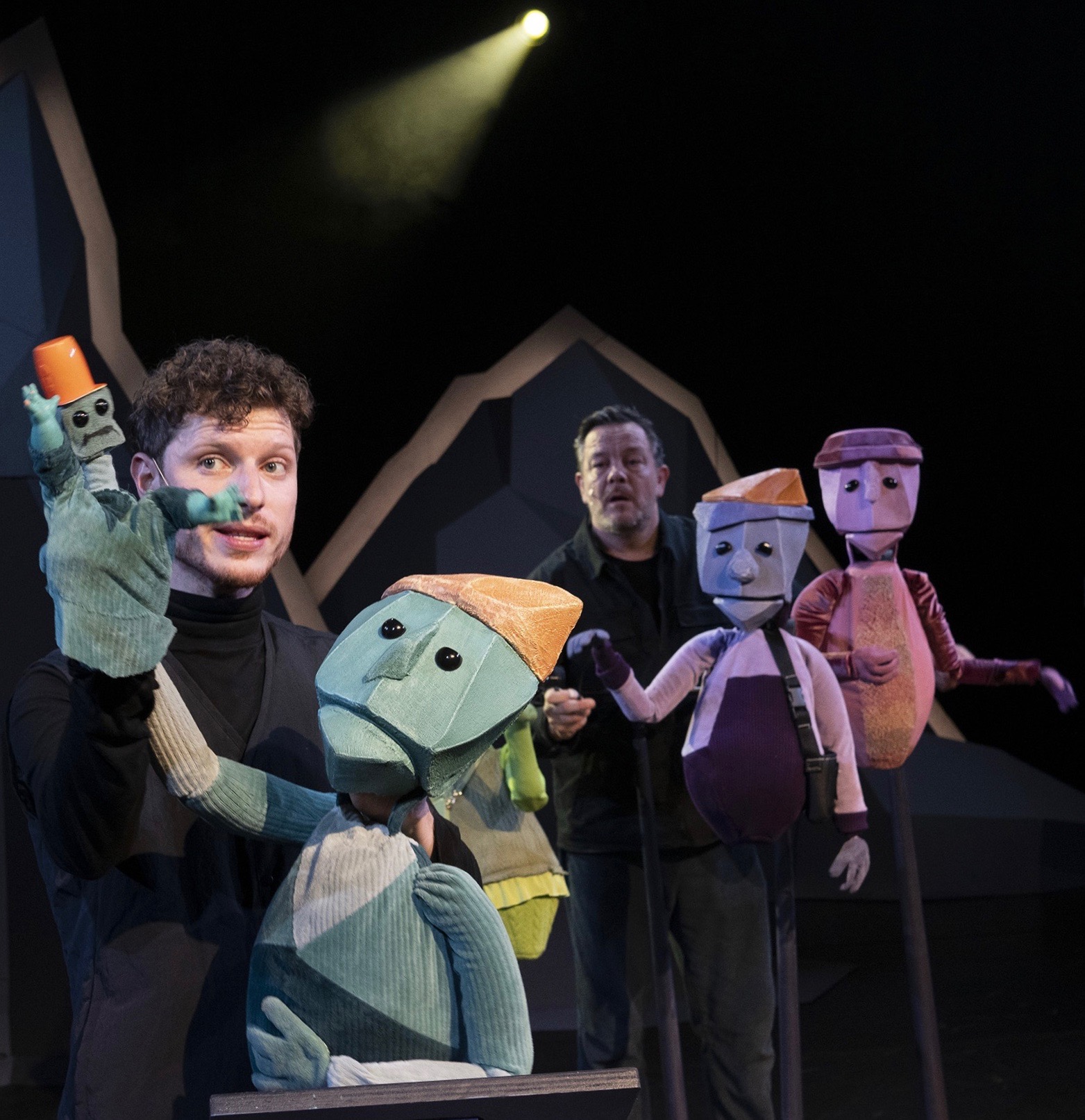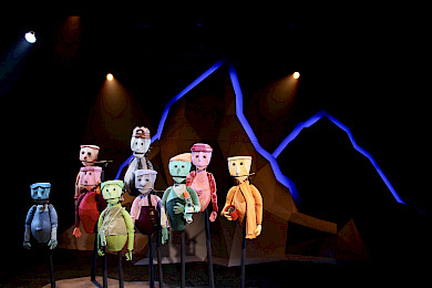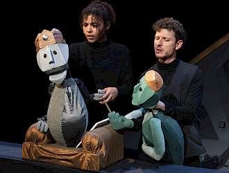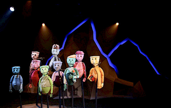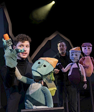 POPpulism is a comic show with a dark edge. With four actors, live percussion and vocals. The absurd and clever text by Eva Gouda is played entirely with puppets and shows how manipulation works.